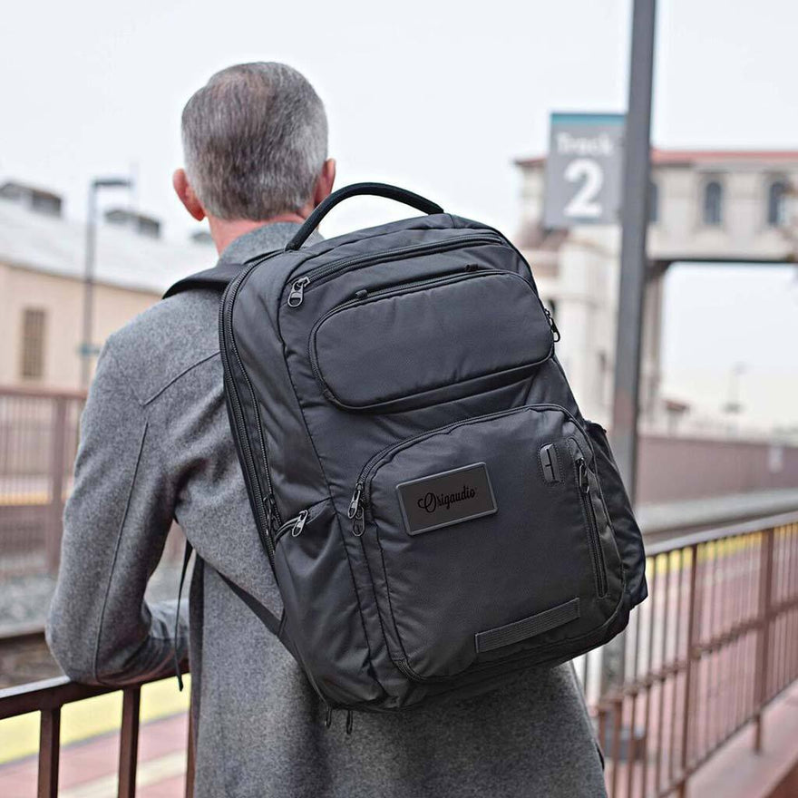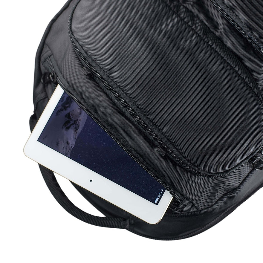 Get down to business with our comfortable, stylish, checkpoint friendly and multi-purpose Embarcadero™ Pack. Keep your hands free for important things by carrying all of your daily necessities—big and small—in this 16-pocket backpack. With dual-sided water bottle/accessory holders, you’re sure to never go thirsty, and with a USB techport, your devices shouldn’t either. Plus, the padded pockets for both tablet-sized devices and most 15” laptops will keep your values protected, assuring safe travel. Fully adjustable ergonomic shoulder straps with a sliding sternum strap keeps you strapped in and ready for the day’s adventure.