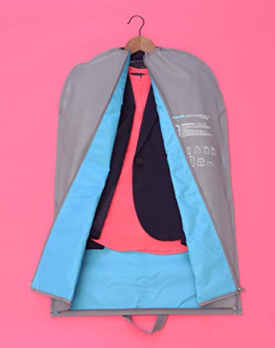 - Tri-fold garment bag reduces wrinkles, which means less ironing upon arrival.