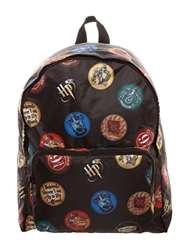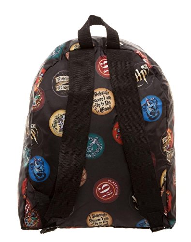 Details: Harry Potter Hogwart's Packable Backpack When packed this Harry Potter bag will easily fit in your car's glove compartment or handbag. To use simply unzip the top and pull out the bag. Details: Product Details: -bag packs into front pocket -2" adjustable shoulder straps -folds into 9.5"W x 7"H Front Pocket Pouch -material:Lightweight poly material -comes in black with "Hogwarts" insignias all over -folds neatly into a small pouch with the Hogwarts crest on it -dimensions: 12" W x 15"H x 5.5"D (Fully Unpacked) -care:Wipe Clean with Cloth -suitable for ages 14 years + This officially licensed Harry Potter backpack will make a great addition to your magical miscellany and prove a perfect retro gift for any Witch, Wizard or Muggle.
