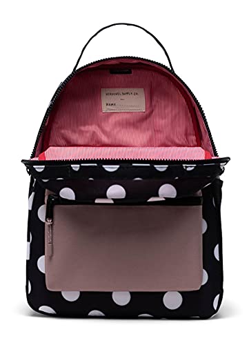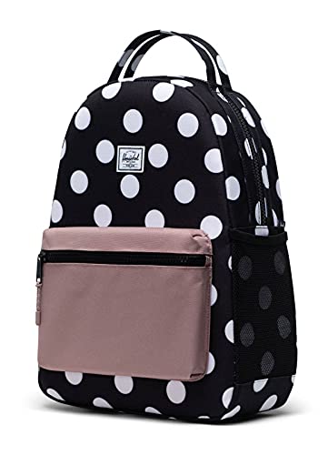 Details: The Herschel Supply Co. Kids™ Nova Backpack features dual top carrying handles and functional storage features, making it perfect for weekends at the playground. Zipper closure. Dual top carrying handles. Front storage pocket with key clip. Exposed plastic zippers with Prusik cord pulls. Mesh water bottle pocket. Removable sternum support strap. Woven interior name label. Designed for children who are 8 - 12 years old. Body and lining are constructed of 100% polyester. Imported.