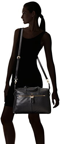 Details: Slim handbag tote with top zipper and detachable shoulder strap holds 14 inch laptop