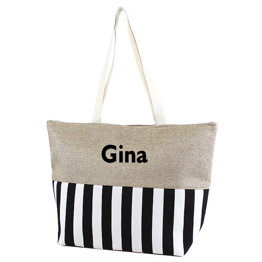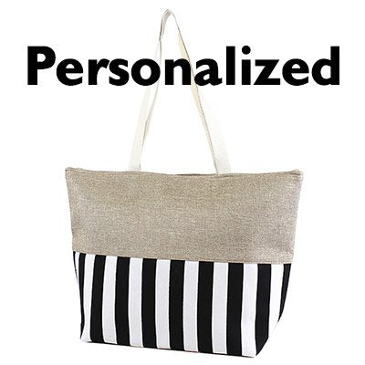 Details: 22" Wide x14" Tall x 7" Deep*****Available Blank or Personalized*****Top Zipper Closure - Lined with Slip Pocket Inside*****Canvas & Burlap