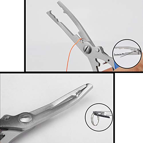 Details: Description: Product Category:Fishing Pliers Material: 2CR13 stainless steel +ABS Multi-function: unhook, ring opening, clip, cut the line, fish scale Packing list: 1 * Fishing Pliers 1 * Coiled Lanyard 1* Sheath Note:Light shooting and different displays may cause the color of the item in the picture a little different from the real thing. The measurement allowed error is +/- 1-3cm.