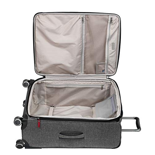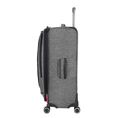 - Custom 360 spinner-wheel system glides smoothly and stably for minimal effort on the go. The case expands with the pull of a zipper for increased packing capacity.