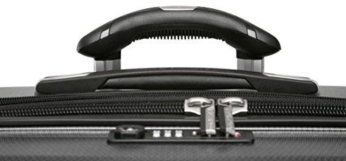 - Effortlessly push your spinner upright with the curved handle that fits the natural contour of your hand. Fully zippered panel includes a suiter loop and padded bar to prevent wrinkles