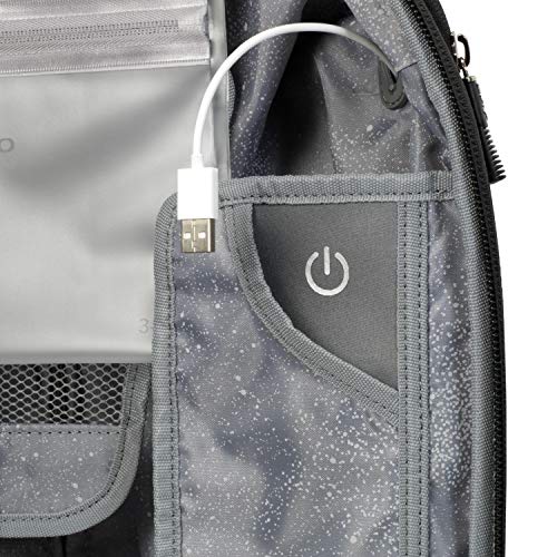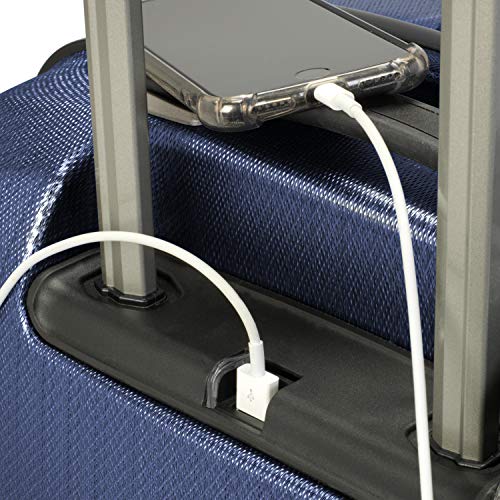 - Keeps electronic devices powered up anytime, anywhere. A sliding cover at the base of the trolley handle opens for easy access to the USB port. A dedicated pouch accommodates a portable battery in the main compartment, where an internal USB cord is pre-routed and ready to be plugged in.*