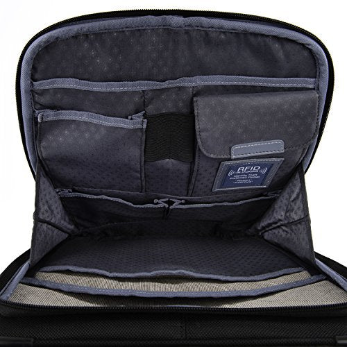 • Padded laptop (up to 15") and tablet sleeves. Rfid-blocking pocket protects credit cards and passports against loss and identity theft. Interior tie down system has built-in accessory pockets and TSA-compliant removable, quart-sized wet pocket.