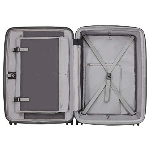 Details: The Werks Traveler 6.0 Large Hardside Case features a number of smart functions and elevated details while offering maximum packing capacity and durability. The case is engineered with V-TriX Triple Layered Polypropylene Composite which creates a lightweight and flexible case with a unique look - perfectly matching the nylon softside products of the same collection. Exterior features: Swiss engineered 3-stop trolley system, 60mm dual caster Hinomoto wheels with Lisof silent tires for a smooth and quiet roll, top and side soft-grip retractable haul handles, self healing YKK RC coil-zippers, a hidden ID tray in the handle bezel that slides up to reveal a pen and SIM card replacement tool, expands up to 3 cm to increase packing capacity, recessed Travel Sentry Approved combination lock allows TSA officers to open the lock without destroying it and relock it after inspection. The interior features: Pack More System which includes a removable, expandable packing cube with a padded 15.4" laptop compartment. The Pack More cube provides organization and creates a flat packing surface for wrinkle-free transport of clothing. Also included on the interior are a zippered divider wall that creates two separate packing spaces, x-shaped compression straps to keep belongings in place during transit, a removable suiter for packing hanging clothing and two zippered mesh pockets ideal for accessories. 11.24 lb/ 5.10 kg. 6102 cu in / 100 L [Expands to 6834 cu in / 112 L]. 1 + 10 Years Warranty.