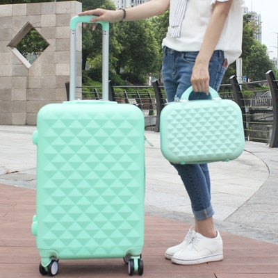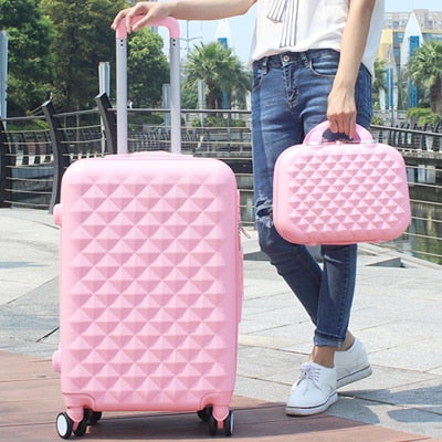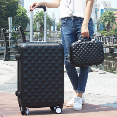 Women Luggage Bag Set,Diamond Pattern Suitcase With Handbag,Fashion Rolling Travel Box,Universal
