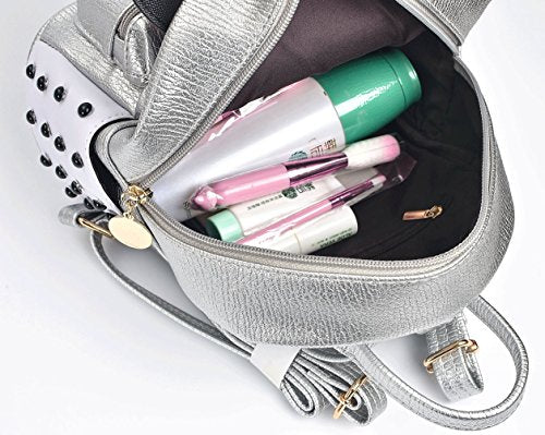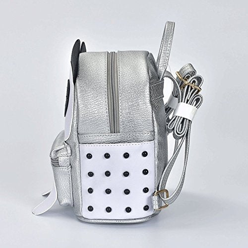 Girls Fashion Pu Leather Panda Book Bag Rivet Women Mini Casual Style Panda Backpack Silver