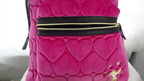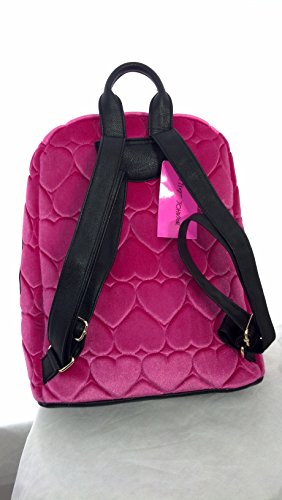 Details: Betsey Johnson Velvet Quilted Hearts Backpack. Measures 15"H x 12.5"W x 5.5"D