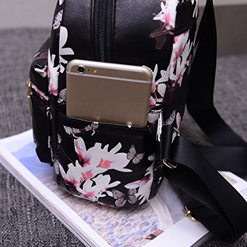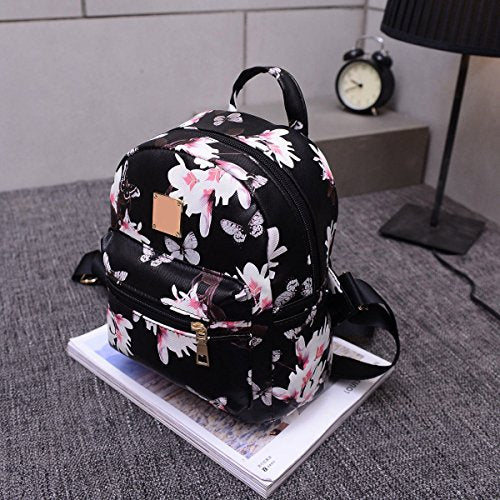 Women Girls Mini Backpack Fashion Causal Floral Printing Leather Bag
