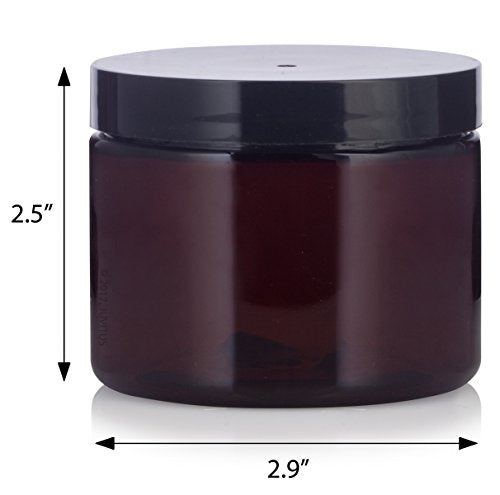 - Includes 12 - 6 oz / 180 ml Amber PET plastic shallow low profile jar with smooth black foam lined lids
