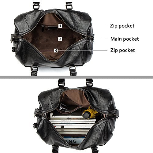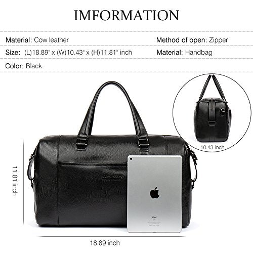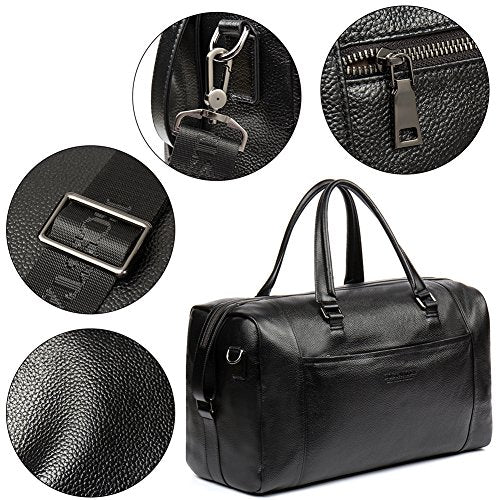 - STYLISH : Whether you're traveling for business or pleasure, this duffel bag offers stylish storage for every overnight trip. The leather duffel bag is crafted from luxe leather and features a classic shape and a sophisticated design with a flat, firm bottom to keep your valuables safe and multiple pockets for organization.