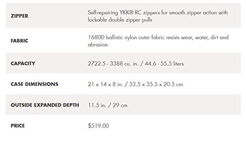 Details: The top pick of frequent travelers. This rolling carry-on features CX technology, expanding the bag by up to 25% when more packing space is needed, then compressing back down to original size for overhead storage.