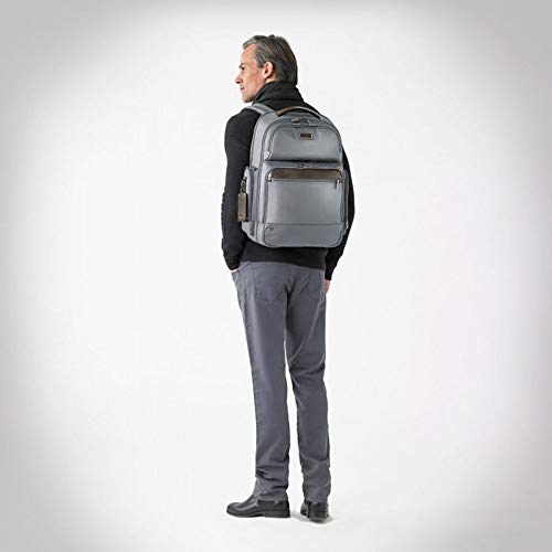 Details: Head off to work or school with your laptop packed safely and stylishly inside this contemporary backpack from Briggs Riley. The Briggs Riley work Large Cargo Laptop Backpack is made from ballistic nylon fabric with top grain leather accents, multiple pockets and compartments, and RFID-blocking technology for added protection. In addition to the spacious main compartment, this backpack includes a protective laptop pocket, three elastic slip pockets to hold cords and chargers, and a full length slip pocket to hold files or documents. Two front organizer pockets, a top cargo pocket, and RFID credit card pockets offer convenient storage for all of your smallest items and most frequently used accessories.