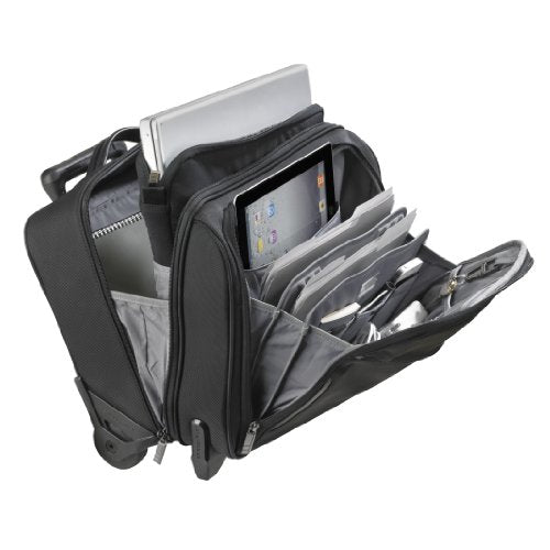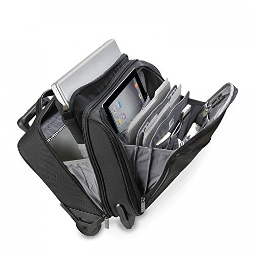 Details: A great compact rolling briefcase designed to fit your needs, this slim rolling business case is highly organized with just the right amount of space for your laptop and files, an ideal carry-on for a day's worth of meetings, two section rolling carry-on design, (a) 15, 6-inch laptop compartment and (b) organizer/file section, lifetime warranty. YKK RC zipper hardware for smooth, self-repairing zipper action and ergonomic double zipper pulls. Ballistic nylon outer fabric resists wear, water, dirt and abrasion.