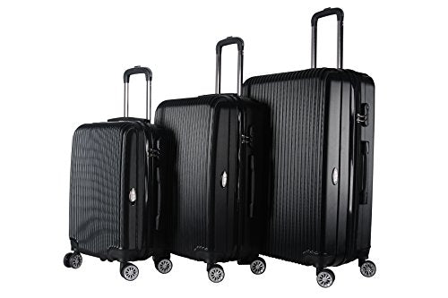 Details: Travel with confidence and style using this hardside upright luggage set. Crafted from sturdy ABS, each piece in the set is built to withstand harsh travel conditions. The scratch resistant texture features a fashionable geometric pattern and a trendy color. The 360 degree spinner wheels and large interior compartment allow you to easily transport your clothing and belongings, while the combination lock keeps your items secure. Attractive and durable, this set is the perfect choice for long or short trips, anywhere your travels may take you.Feature: Checkpoint-Friendly, Expandable, Locking, Spinner, Telescoping HandleType: Hardsided, Lightweight, Rolling, UprightProduct Features: LinedSet includes: One 28-inch Upright, One 26-inch upright, one 22-inch uprightPattern: GeometricColor Options: Purple, Royal Blue, Silver, BlackMaterial: ABSInterior Pocket: 1Weight: 28-inch Upright (9.48 pounds), 26-inch Upright (7.05 pounds), 22-inch Upright (5.33 pounds)Carrying handle: YesWheeled: YesWheel type: 360 Degree Spinner WheelsClosure: Zipper(usually zipper)Locks/ keys included: Combination LockExterior DimensionsLarge: 18.9 inches long x 12.2 inches wide x 28 inches highMedium: 17.32 inches long x 10.24 inches wide x 26.38 inches highSmall: 14.17 inches long x 7.5 inches wide x 22.44 inches high