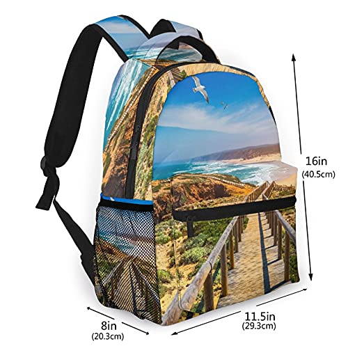 Casual Backpack,Boardwalks To The Beach And Ocean With F,Business Daypack Schoolbag For Men Women Teen