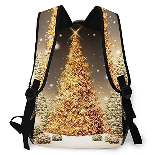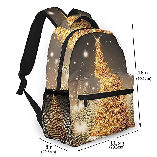 Casual Backpack,Merry Christmas Shining Gold Dressed Tre,Business Daypack Schoolbag For Men Women Teen