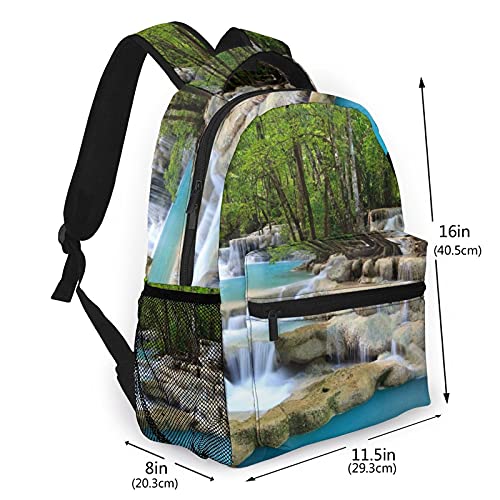 Double Shoulder Casual Backpack,Waterfall Landscape Nature Scenery Exotic Tre,Lightweight Durable Rucksack Business Travel Sports Schoolbag Daypack for Men Women Adult Teens