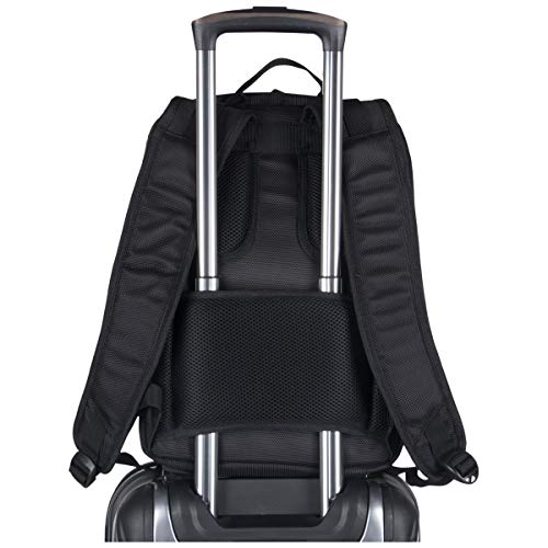 Details: Rfid blocking technology in organizer pockets helps prevent electronic theft. Laptop pocket is padded to fit most laptops with up to a 15" Screen. Tablet Pocket is padded and compatible with most tablets. Durable, 1680D polyester exterior with secure top zip construction and fully lined interior. Front exterior features an upper zipper pocket softly lined to hold valuables and a zip down organizer with room to hold a variety of business essentials. Rfid protected front compartment interior Includes two open pockets, a gusseted open accessory pocket, and a flap over pocket, leaving plenty of room to store any other needed belongings. Rear compartment is fully padded to hold and protect your laptop and includes a padded tablet pocket. Self-repairing zippers made for long-lasting use. Easy to grab front exterior webbed loop and top handle. Rear exterior features a padded back panel, a trolley tunnel that fits over most luggage upright handles for hands free carrying. Adjustable shoulder straps are fully padded with air mesh. Overall Dimensions: 16.0" H x 11.0" L x 4.5" D; laptop pocket Dimensions: 15.0" H x 11.0" L x 1.0" D; Weight: 2.2 lbs. Includes a lifetime limited Manufacturer Warranty., for unisex-adult