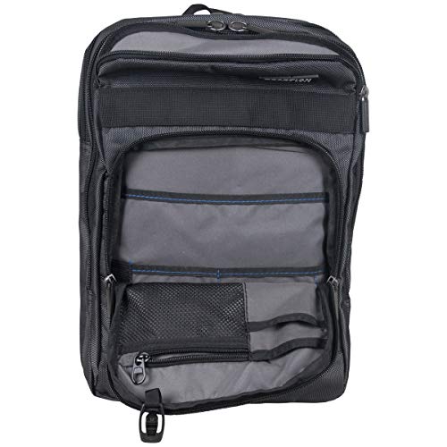 Details: Rfid blocking technology in organizer pockets helps prevent electronic theft. Laptop pocket is padded to fit most laptops with up to a 15" Screen. Tablet Pocket is padded and compatible with most tablets. Durable, 1680D polyester exterior with secure top zip construction and fully lined interior. Front exterior features an upper zipper pocket softly lined to hold valuables and a zip down organizer with room to hold a variety of business essentials. Rfid protected front compartment interior Includes two open pockets, a gusseted open accessory pocket, and a flap over pocket, leaving plenty of room to store any other needed belongings. Rear compartment is fully padded to hold and protect your laptop and includes a padded tablet pocket. Self-repairing zippers made for long-lasting use. Easy to grab front exterior webbed loop and top handle. Rear exterior features a padded back panel, a trolley tunnel that fits over most luggage upright handles for hands free carrying. Adjustable shoulder straps are fully padded with air mesh. Overall Dimensions: 16.0" H x 11.0" L x 4.5" D; laptop pocket Dimensions: 15.0" H x 11.0" L x 1.0" D; Weight: 2.2 lbs. Includes a lifetime limited Manufacturer Warranty., RFID Blocking;Laptop Compartment , unisex-adult Department, No Wheels, Durable 168D Polyester
