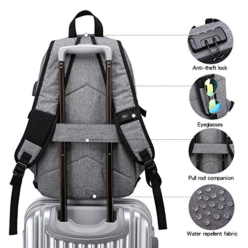 Laptop Backpack,Business Travel Anti Theft Backpack for Men Women with USB Charging Port,Slim Durable Water Resistant College School Bookbag Computer Backpack Fits 15.6 Inch Laptop Notebook,Grey