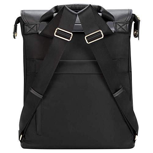Details: The Targus Newport Convertible 2-in-1 Messenger/Backpack caters to the always-on lifestyle of the modern professional by offering seamless transitions between two silhouettes and specially designed features for both utility and style. The bag features a protective cradle for slim laptops or tablets, and a slim main compartment to hold files, sunglasses, and other small accessories. Convert from backpack to messenger by extending the adjustable shoulder straps through the strategically placed lip of the back panel. For those that frequently travel for work or simply need a handy bag for a leisure getaway, it can easily be attached to rolling luggage with a luggage strap for a weightless carry. Made from a thoughtful combination of high-density water-repellent twill nylon and leatherette accents, the bag boasts a luxurious sheen in addition to resilience against the wear and tear of being your everyday bag.