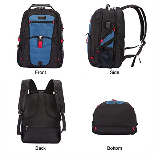 - ✈【ANTI-THEFT DESIGN & TSA FRIENDLY】 With Fixed Password Lock and Durable Metal Zippers, our 17 inch laptop bag is safe guaranteed for protecting your valuable items inside. No need to worry theft easily opening your backpack when you are travelling or lining up. With the instruction card,you don’t need to worry about forgetting your code.And lay-flat design is for easily organized and get your items via opening up to 180 degree when through the airport security.