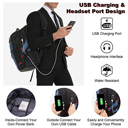 - ✈【CONVENIENT USB&HEADSET PORT DESIGN】 Laptop backpack offers a convenient on-the-go access to portable power, with USB charging port outside. Great for charging your phone or other electronic devices while walking. (Please note that the power bank is not included in this USB laptop backpack). And the headphone interface frees your hands when enjoying audios, music, etc.