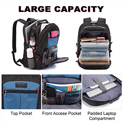 - ✈【LARGE CAPACITY & MULTIPLE POCKETS】 Men travel backpack owns 18 independent pockets for large storage and organization for small items. External dimensions: 13.9*8.3*18.9 Inches(L*W*H). Capacity: 45 L. Main padded compartment with dual zipper fit for 15.6, 17 and up to 17.3 inch laptop and padded compartment for Ipad.(Since the laptops' appearance of different brands is different, this backpack is suitable for most 17.3-inch computers, but if laptops' form is too large, it may not be suitable.