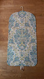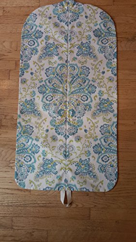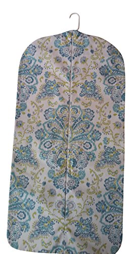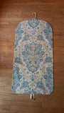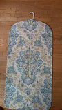 Details: Women's hanging garment bag in a pretty turquoise and green medallion on a cream background. 100% cotton with a zip front. Dry clean suggested. It will hold 4-5 garments and is long enough for dresses. One of my favorites!