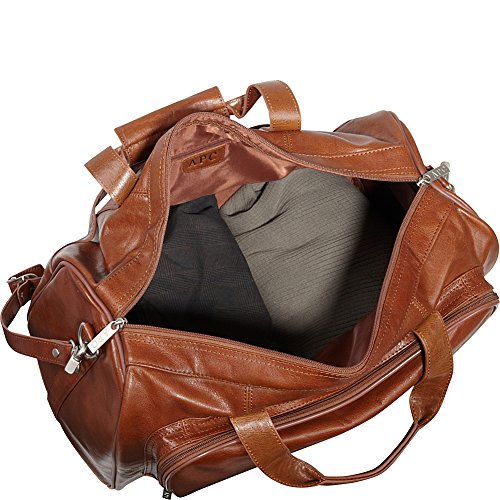 Details: This rugged leather duffel bag adds a touch of classic style to your weekend travel routine. The AmeriLeather 18-inch Leather Carry on Weekend Duffel is made from top grain cowhide leather with silver tone hardware and features dual top handles and an adjustable, detachable shoulder strap for versatile carrying options. This duffel bag has a roomy main compartment with a top zipper closure and a fully lined interior with a zipper pocket for valuables. A front zip around organizer compartment is loaded with pockets for your cell phone, pens, keys, cords and cables, and other small items while a back Velcro pocket offers extra storage for accessories.