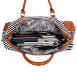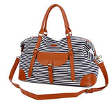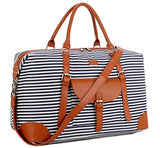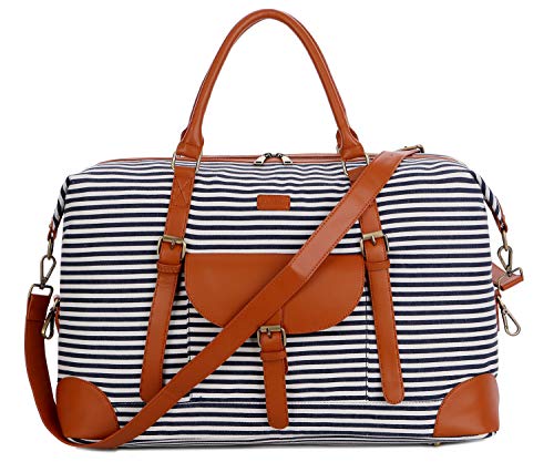 BAOSHA Oversized Canvas PU Leather Travel Tote Duffel Bag Carry on Weekender Overnight Bag for Women and Ladies