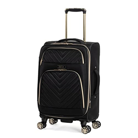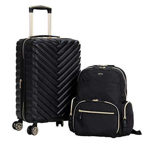 Kenneth Cole Reaction Women's Chelsea Luggage Chevron Softside 8-Wheel Spinner Expandable Suitcase Collection, Black, 2pc Bundle (Carry On+Backpack)