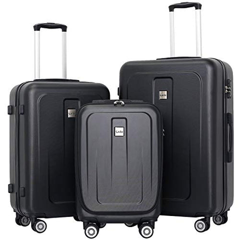 Ceilo ABS Hardside Luggage Sets With USB Interface Laptop Pocket,Lightweight Carry On Suitcase With TSA Lock&360°Spinner Wheels,Black,3-Piece Travel Luggage Set (20/24/28)