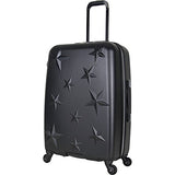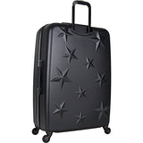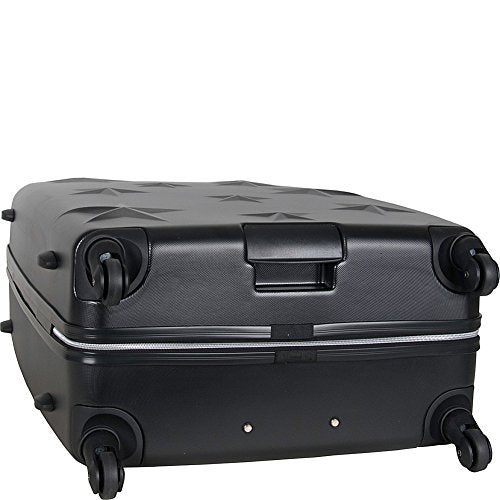 Details: Star embossed textured hardside ABS 4-wheel spinner 3-piece luggage set includes; 20" carry-on, 24" checked luggage, 28" checked luggage. 4-Wheel spinners allow for effortless 360 degree navigation allowing you to get to where you are going faster. Durable, embossed ABS exterior with diamond texture, a Tear-Resistant, fully lined interior and color contrast zippers. Roomy main compartment interior consists of secure garment straps with buckle closure and a side zipper pocket for smaller items. Under-the-lid section features a large u-shaped zipper pocket with an additional zipper pocket. Self-repairing coil zippers for long-lasting use. Front lid features a large u-shaped zipper pocket allowing for double sided packing. Anti-theft kissing slider zippers made with zipper pullers that fit a TSA lock or pad lock for ultimate security. Comfortable, flexible top handle, side handle on 24" and 28" sizes, and bottom grab handle allows for easy lifting into overhead bins or off the conveyor belt. Molded side feet allow upright to stand on its side. Retractable, trolley handle retracts to be 41 inches tall with a locking push button mechanism. Manufacturer 10 year limited warranty. 20" carry-on overall Dimensions: 22.0" h x 14" L x 9" D (includes wheels) and weights: 6.25 lbs. 24" checked luggage overall Dimensions: 27.0" h x 17.0" L x 11.0" D (includes wheels) and weighs 8.4 lbs. 28" checked luggage overall Dimensions: 30.0" h x 19.0" L x 12.0" D (includes wheels) and weighs 9.6 lbs.