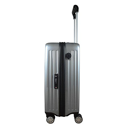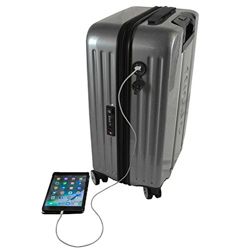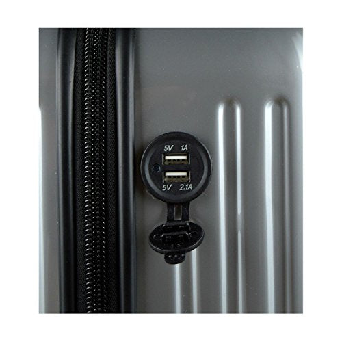 Details: The NHL Luggage Carry-on 22" Hardcase Spinner in Gray is the ultimate combination of 21st Century travel luggage. Featuring durable, ultra lightweight 100% polycarbonate construction, a TSA-approved built-in combination lock and a USB charging port with an interior battery pocket and cable (batteries not included) this piece is ready for any adventure. The four double wheels provide exceptional maneuverability and smooth rolling in any direction. The nylon covered interior includes a full zipper panel, a separate zipper accessories pocket and cross-straps to hold your belongings in place.