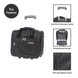 Details: The Ciao Under the Seat bag easily stands out from rival bags due to its pursuit of the highest quality. It is made from 100% real ballistic nylon, a much higher grade material than the polyester fabric that is used in most other bags. It is uses a dual-pole telescopic handle system as opposed to the traditional single pole handles to provide extra durability and stability. The interior uses a compartmental design to help you separate belongs such as liquids for quicker access while maximizing storage space. It is a bag specifically designed for shorter trips or to carry valuables.