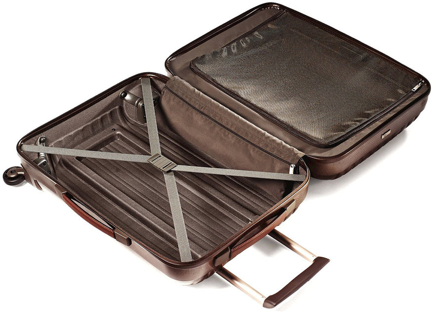 Sleek modern design, executed in the most innovative of materials, InnovAire is the collection for the modern traveler. Constructed of Curv material, layers of woven polypropylene that are formed into self-reinforced composite sheets, providing superior durability while being extremely lightweight. Supple leather carry handles, smooth rolling wheels, and considered organization ensure ease of transit. The InnovAire Global Carry-On Spinner, for the contemporary global traveler.