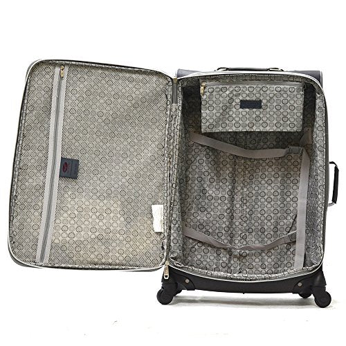 Details: Constructed of Rugged 840 D. 3-tone Jacquard Poly. 360° spin-wheel system allows sideway rolling capabilities for easy aisle access. 360° spin-wheel system allows free movement in all directions. Push button retractable handle. Expanding feature that adds 20% more packing capacity. Interior top hanging zipper pocket & dual buckle tie-belt. Extra zipper mesh pocket for more convenience. Multi front zipper pockets for extra packing capacity. Water bottle pocket on Carry-on. Elegantly imprinted full interior lining. Super lightweight construction. EVA foamed front panel. Dimensions: 22" H x 14" W x (8"+2") D