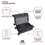 Details: Traveling has never been such a pleasure. Introducing the Swissgear 7910 20” USB Expandable Carry On Hardside Spinner Luggage. Made of an extremely durable molded polycarbonate hardshell in a brushed satin finish texture, this luggage featuring a large oversize main zipper, a low-profile TSA-accepted combination lock, a fabric wrapped lift handle, and eight multi-directional spinner wheels, this luggage also comes equipped with a twin push button locking retractable handle for the ultimate in convenience for both left and right-handed users. Constructed using an expandable split-case design for naturally superior packing organization, this luggage also features a rich, fully lined interior, adjustable clothing tie-down straps, a zippered divider panel with a built-in flat packing pocket, and an integrated USB port that connects to an internal portable power bank that can charge your smartphone and other electronics when you’re on the go (20” spinner only; battery pack NOT INCLUDED).