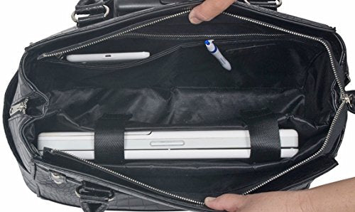 - Removable padded pocket will fit your tablet, iPad, 12", 13", 14", 15, 16" or 17" laptop. ** Laptops are measured corner to corner diagonally.** The padded laptop pocket can be easily removed to make a larger interior space. Fully lined spacious black interior with large zipper wall pocket plus two open pockets. Two convenient exterior side pockets. Secure zipper top closure. Back side zipper pocket.