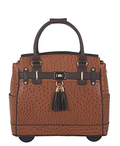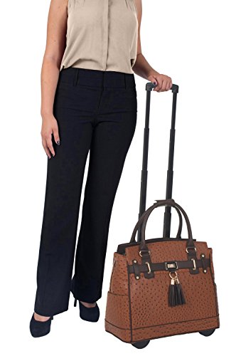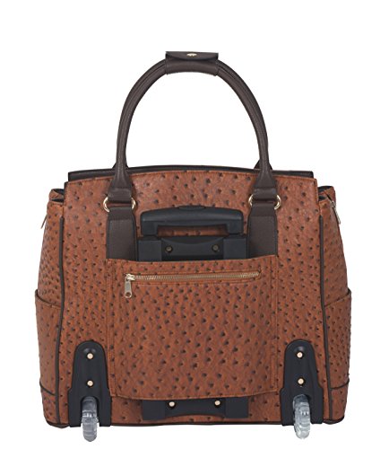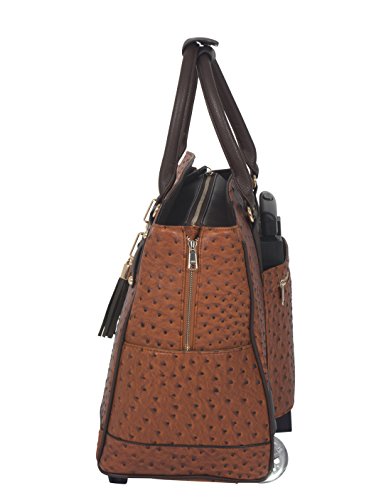 Details: Sophisticated with maximum functionality. Grab your laptop, iPad, tablet, books, files and off you go! The perfect tote for work, school and travel. Look stylish wherever you go with this rich brown faux ostrich rolling tote carryall bag. --------------------------- Mother's day gifts, mother's day gift from daughter, mother's day gift for mom, mother's day gift for grandmas, mother's day gift for her, mother's day gift from son, mother's day gift for sister.