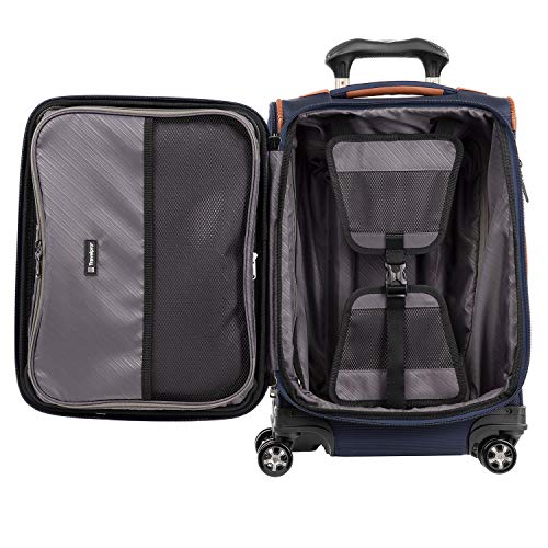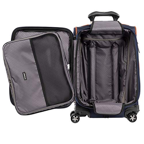 Details: Go anywhere with a spinner that is all your own. The crew versapack global carry-on expandable spinner is designed for total packing versatility and customizable with a variety of interchangeable Travelpro exclusive zip-in organizers. Included inside the lid is a removable zip-in garment organizer, ideal for storing folded shirts, dresses and jackets. Also available for purchase separately are three additional coordinating Travelpro exclusive zip-in organizers-a laundry organizer for bathing suits, workout clothes and other damp items, A packing cubes organizer for shorts, shirts and accessories and an all-in-one organizer for wet and dry storage. Carry-on compliant with 80% of the world's largest airlines-domestic and international, this spinner also features a tip-resistant zippered expansion option that increases packing space up to two inches. Enjoy total convenience with a built-in USB port and dedicated exterior power bank pocket, exterior padded laptop pocket and removable TSA-compliant toiletries bag that stores perfectly in a same-sized exterior pocket. Plus, this spinner's precision glide system ensures precise control and effortless roll on eight ultra-durable, 360 degree magnatrac spinner wheels led by a four-stop, height-adjustable PowerScope handle with comfortable Contour grip. Built for professional-grade dependability With robust corner armor, skid guards and heavy-duty wheel housings, crew versapack is the civilian version of the luggage flight crews use, tested to meet the same superior quality and durability standards. This spinner is further backed by the comprehensive built for a lifetime limited warranty with our trusted companion promise.