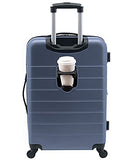 - Patented 3-in-1 cup holder, USB port, and phone holder located in back of luggage for travel convenience