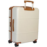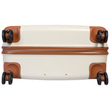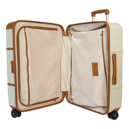 - Lightweight hard-shell suitcase with leather trim featuring spacious interior and spinner wheels