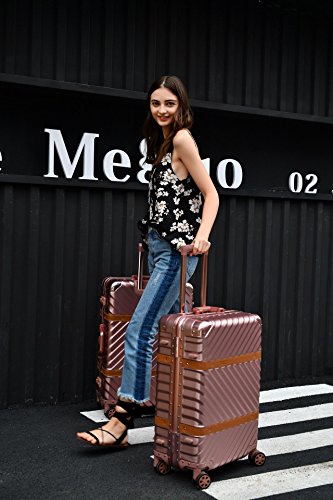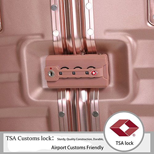 ABS and PC material:lightweight and not easy broken.The retractable trolley has multiple different height settings that lock in place,for people with different heights and needs.The metallic corner and sturdy thick aluminum frame can perfectly protect the luggage from collision damage.TSA lock allow the US Transport Secuurity Association to inspect your luggage without damaging the locking mechanism.High quality omni-directional wheel is of heat dissipation capacity,never mind the long distance.Handle:Top and side handles which automatically return the original position when released enhance your comfort to carry the luggage and bear a heavy weight.
