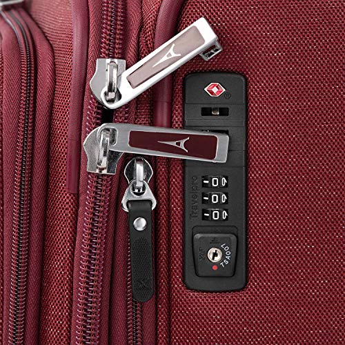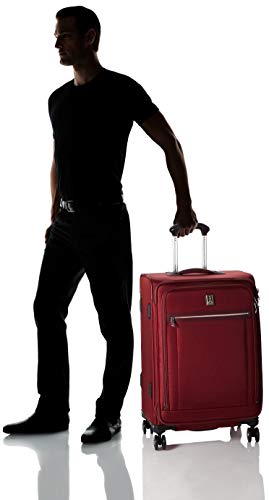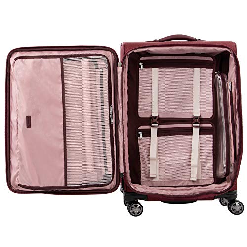 Details: Finally, great looking checked luggage that is as functional and durable as it is stylish. The Platinum Elite 25" Expandable Spinner is perfect for medium and long trips, accommodating everything you need, guarding against wrinkles with a built-in suiter and keeping everything organized under a deluxe tie-down system with integrated accessory pockets. Constructed with premium fabrics, leather accents and chrome zippers, this gorgeous bag also features a tip-resistant tapered expansion option that provides up to 2" additional packing capacity. Integrated lock allows TSA authorities to safely unlock and lock suitcase for inspection when needed (default lock code is 0-0-0 to open). For effortless mobility, this 25" suitcase is equipped with our Precision Glide system-eight MagnaTrac, self-aligning, 360-degree spinner wheels guided by an adjustable PowerScope extension handle with patented Contour Grip and rubberized touch points, ergonomically designed to be easy on the hands. Backed by Travelpro built for a lifetime limited warranty with our trusted companion promise which covers the cost of repair for damage from airline or other common carrier for 1 year.